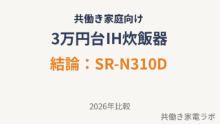 共働き家庭が3万円台で選ぶべきIH炊飯器を解説。結論はPanasonic SR-N310D。比較記事や購入場所情報も含め、失敗しない選び方をわかりやすく紹介します【2026年版】。