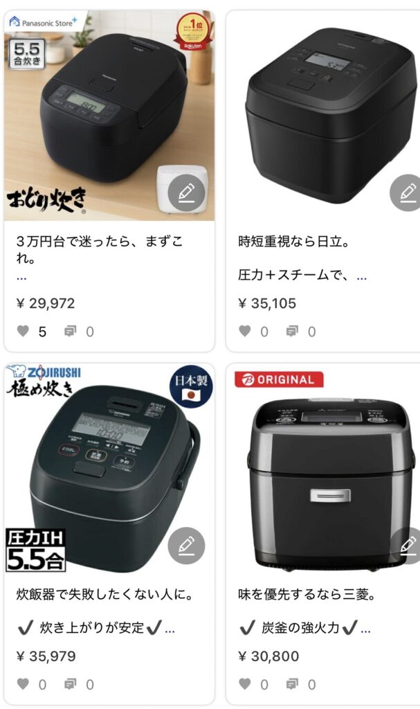 おすすめの3万円台炊飯器は、楽天ROOMでまとめています。
