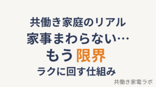 生活改善 共働きで家事が回らない…を解決|限界をラクにする仕組み 共働きで家事が回らないと感じている方へ。原因と解決策をわかりやすく解説。「減らす・任せる・放置する」の3つで、無理なく家事を回す方法を紹介します。 2026.04.08 生活改善