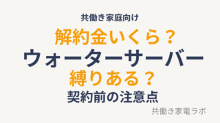 ウォーターサーバー ウォーターサーバーの解約金・縛りは?契約前に知るべき注意点【2026年版】 ウォーターサーバーの解約金や契約の縛りは?契約期間や違約金の目安、注意点をわかりやすく解説。共働き家庭の視点で失敗しない選び方も紹介します。 2026.04.04 ウォーターサーバー